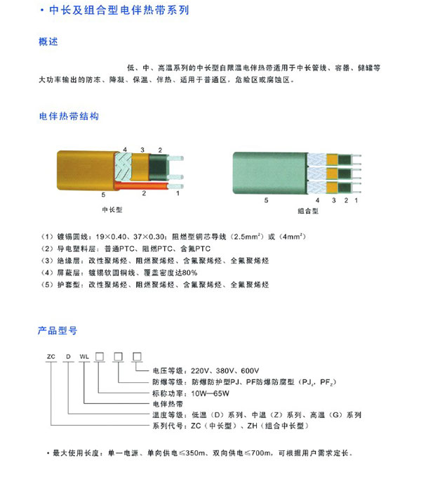 - 產品名稱:中長及組合型電伴熱電纜
